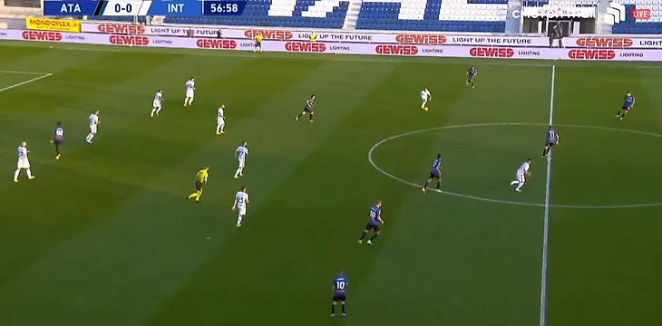 "Интер" начал второй тайм с владения: на отрезке с 45-й по 55-ю минуты процент вырос аж до 63%. Дальше ("Интер" доминировал до двойной замены от Гасперини – этот промежуток и рассматриваем) он немного упал, до 57%, но картина сохранялась: "Аталанте" часто приходилось откатываться в низкий блок, и она ужасна в этом компоненте – матч против ПСЖ это подтвердил.