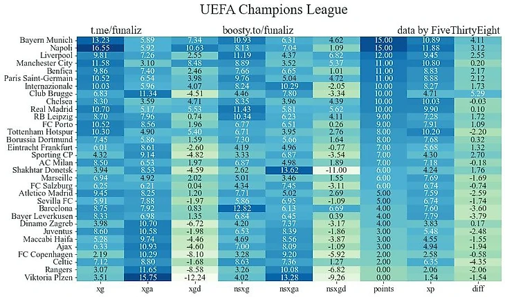Кейс с «Атлетико» неплохо иллюстрирует идею того, что не стоит быть слишком дерзким при оценке перформанса команды — велик соблазн сказать, что любой дурак должен из такой группы выходить, и это супер-провал, но характер домашних игр во втором круге показывает, что при нормальной реализации должны были набирать больше. При этом были и не самые удачные игры — ну и в целом понятно, что не стоит гордиться перформансом, примерно сопоставимым с «Порту» и «Байером» (даже при том, что его должно было хватать для продолжения борьбы в шестом туре).