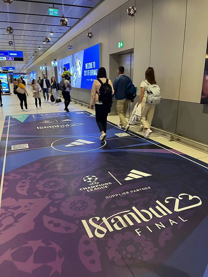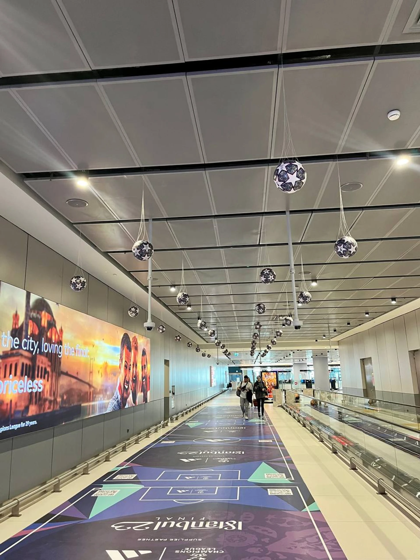 Аэропорт Стамбула всеми силами вам рассказывает о предстоящем финале. Каждая компания стремится обозначить свою причастность к матчу, размещая рекламу