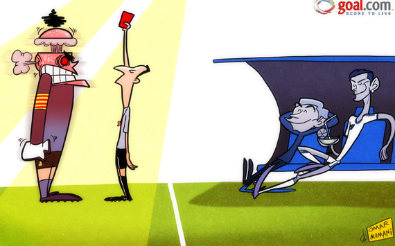 Голкипер «Барселоны» Виктор Вальдес был удален после окончания матча 26-го тура чемпионата Испании против «Реала» (1:2) за слова сказанные арбитру Мигелю Анхелю Пересу Ласа: "Позорник, ты облажался".Игрок сборной Испании намекал на спорный эпизод с падением защитника «Барселоны» Адриано в штрафной площади «Реала».
