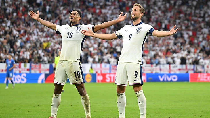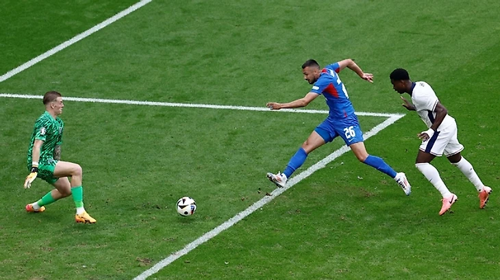 Но в начале второго тайма было что-то бодрое со стороны футболистов в белом. Триппьер хорошо вошел в штрафную (опять пас низом) и отдал пас на Фодена, но офсайд отменил гол. Еще в первом тайме заметил как далеко выходит Пикфорд при позиционной атаке. Это же заметил и Стрелец, жаль не попал. И опять нет ни каких мыслей в атаке у Англии. Хотя опять не совсем по установке тренера решил пробить Райс, штанга выручила. Вот почему нельзя было раньше бить из дали. Как-то однобоко выглядела Англия, перекат мяча в центре, потом на фланг и навес (это вкратце). Но потом случилось то, что скрасило этот вечер. Аут у ворот Дубравки, Гехи делает скидку затылком в район одинадцати метров и Джуд делает пожалуй лучший гол ЕВРО2024. Что имеем в концовке; два удара за два тайма, два голы и еще два тайма по пятнадцать минут