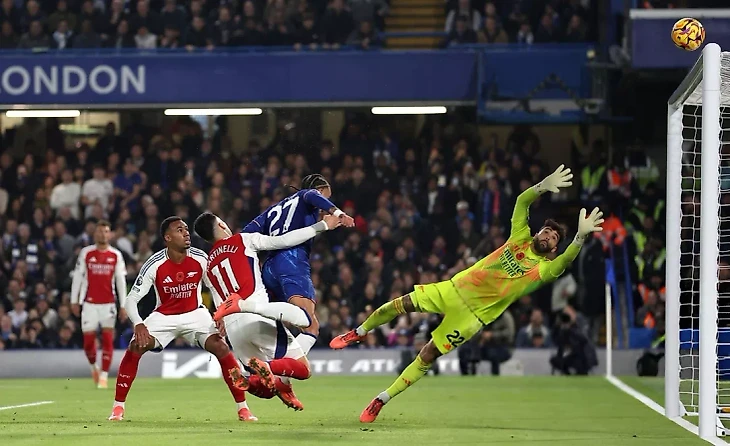 Бодро начали обе команды и уже на третьей минуте Палмер хорошо пробил, но Райя надежен. На первых минутах «Челси» мяч держит у себя на правах хозяев, да и красные не против такого расклада. Расчет пока на стандарты у команды Артеты, угловой растянулся на три волны. Но не долго «Арсенал» был вторым номером, включили прессинг и не дают выйти Палмеру и компании со своей половины. Но нет продвижения и обострения. Синие ушли в контратаку без явной угрозы, но началась она с приема мяча от Палмера. Видели мы такое уже в матче с «МЮ» - одним движением убрать двоих игроков соперника - нельзя давать столько свободы двадцатому номеру. Игра пошла на встречных курсах и скоростях, Нету хорошо навесил на Гюсто, но не хватило роста чтобы замкнуть на дальней.