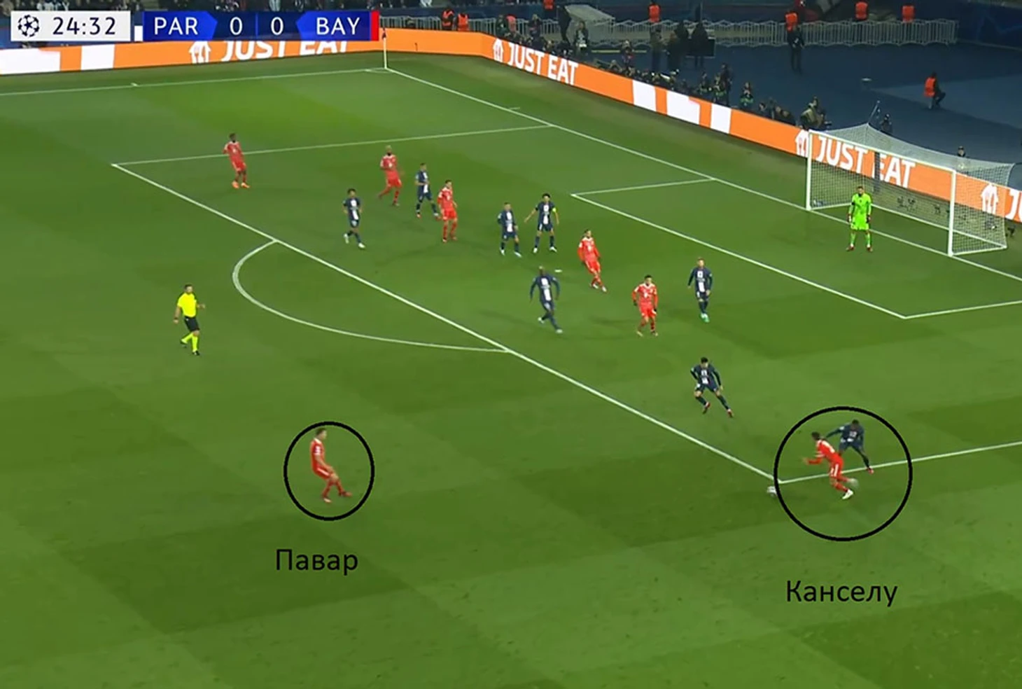 Павар активно поддерживал Канселу, выдвигаясь на место полузащитника, а Горецка помогал перегружать центральную зону. Подопечные Гальтье словно ждали этого давления, но вразумительной контригры не предлагали, чему после матча удивлялся Нагельсман, явно не ожидавший подобной пассивности от соперника.
