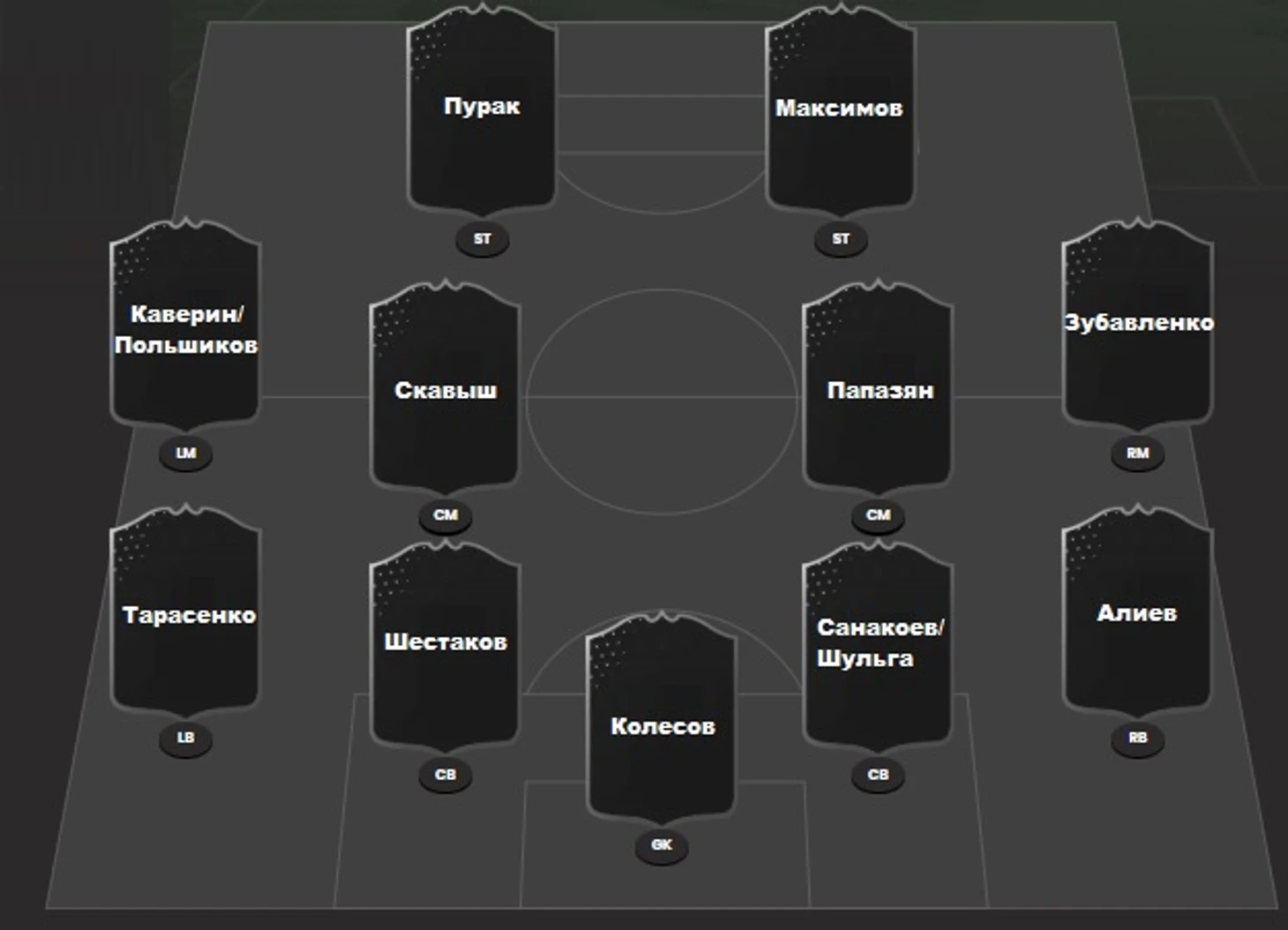 Команда играет по схеме 4-4-2.
