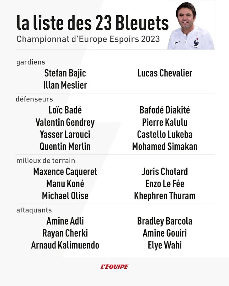 Невероятно, но Франция выигрывала молодёжное Евро лишь однажды – это было в далеком 1988 году. Сейчас же команда Сильвена Риполля отправляется в Румынию и Грузию в статусе одного из фаворитов турнира, имея в своем составе несколько молодых звезд, которые уже этим летом могут перейти в топ-клуб. Кефрен Тюрам («Ницца», 2+8), Энцо Ле Фе («Лорьян», 6+5) и Майкл/Мишель Олисе («Кристал Пэлас», 2+11) – все они, обладая невероятным талантом, позволяют рассчитывать Риполлю на яркое выступление команды на предстоящем Евро. Лоик Баде («Севилья», 2+0) совсем недавно играл в финале Лиги Европы в составе «Севильи», а Амин Гуири («Ренн», 17+8) и Райан Шерки («Лион», 5+6) являются лидерами своих клубов.