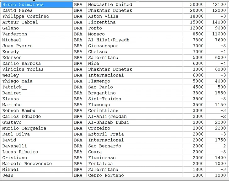 Долгое время первенство по поставке легионеров было у Бразилии. В этом трансфертном окне