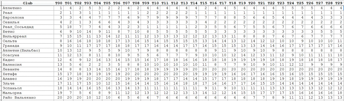 Далее Сосьедад, Вильяреал, Атлетик, Валенсия.