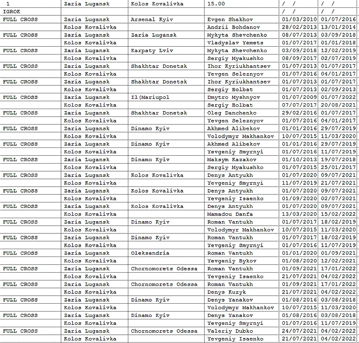 4\5я колонки – дата начала\окончания пребывния в клубе