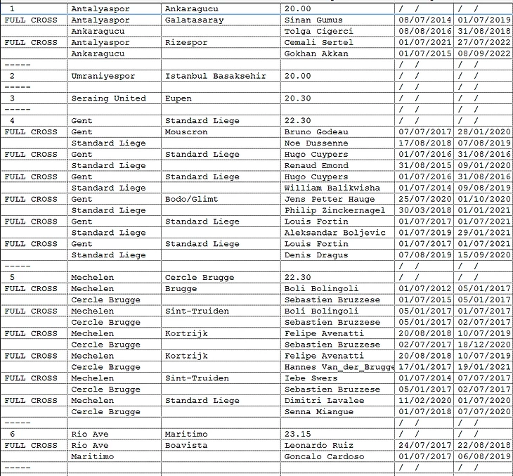 Вашему вниманию предоставляется информация 1.игроки выступали в прошлом за клуб-соперник. 2.Соперники играли за один и тот же клуб (возможно в разное время- NO CROSS)