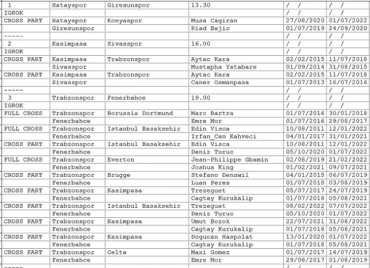 4\5я колонки – дата начала\окончания пребывния в клубе