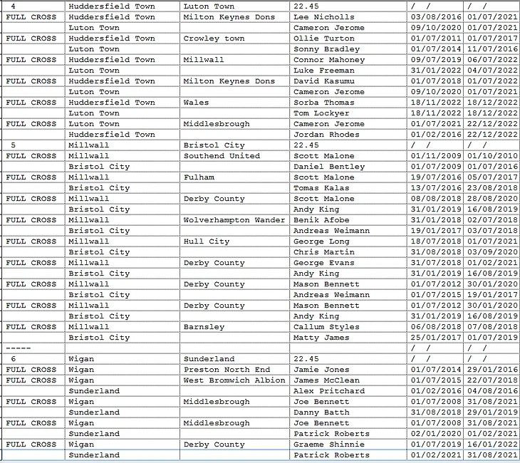 4\5я колонки – дата начала\окончания пребывния в клубе