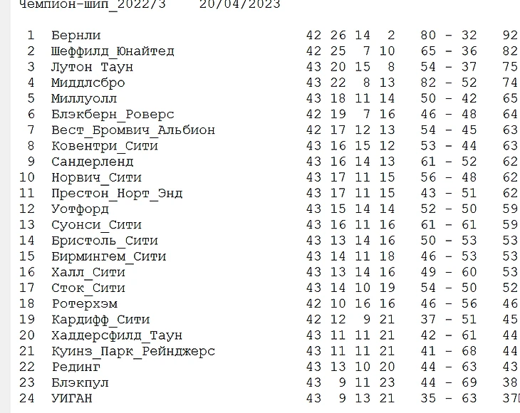 Ситуация на 21.04.23 футбольного чемпионата Championship 2022/23 (топ-10)