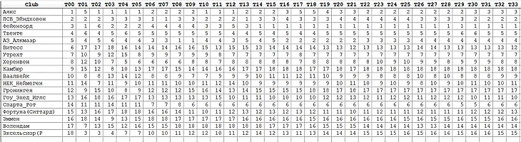 В зоне еврокубков Твенте(5), Утрехт(7), и неожиданно Спарта(14->6).