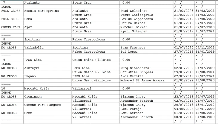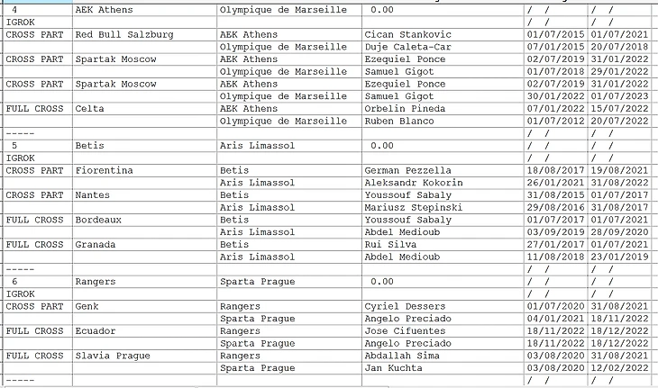 Вашему вниманию предоставляется информация 1.игроки выступали в прошлом за клуб-соперник. 2.Соперники играли за один и тот же клуб (возможно в разное время- NO CROSS)