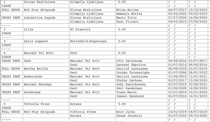 Вашему вниманию предоставляется информация 1.игроки выступали в прошлом за клуб-соперник. 2.Соперники играли за один и тот же клуб (возможно в разное время- NO CROSS)