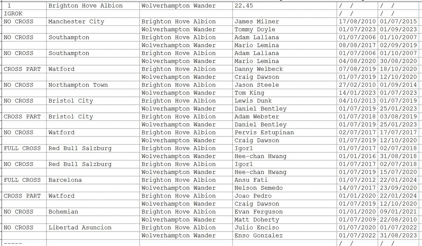 Вашему вниманию предоставляется информация 1.игроки выступали в прошлом за клуб-соперник. 2.Соперники играли за один и тот же клуб (возможно в разное время- NO CROSS)