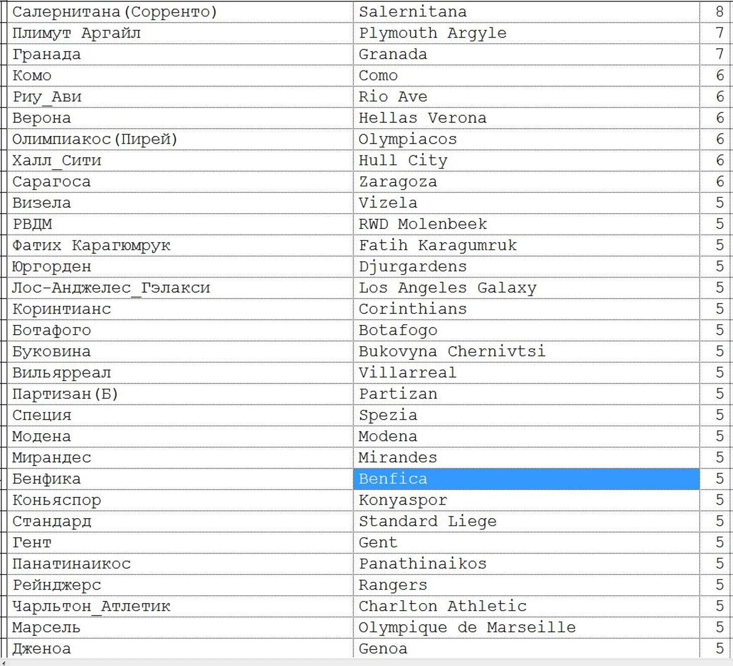 Сначала общая таблица по клубам кол-ва трансферов, вкл. свободных агентов и аренду.
