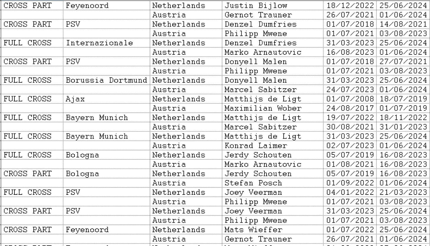 Вашему вниманию предоставляется информация 1.игроки выступали в прошлом за клуб-соперник. 2.Соперники играли за один и тот же клуб (возможно в разное время- NO CROSS)