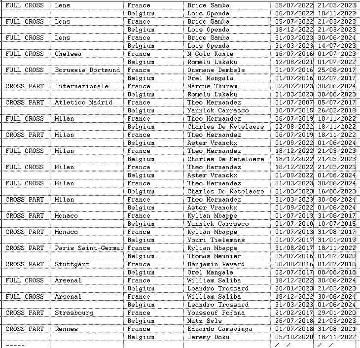 Вашему вниманию предоставляется информация 1.игроки выступали в прошлом за клуб-соперник. 2.Соперники играли за один и тот же клуб (возможно в разное время- NO CROSS)