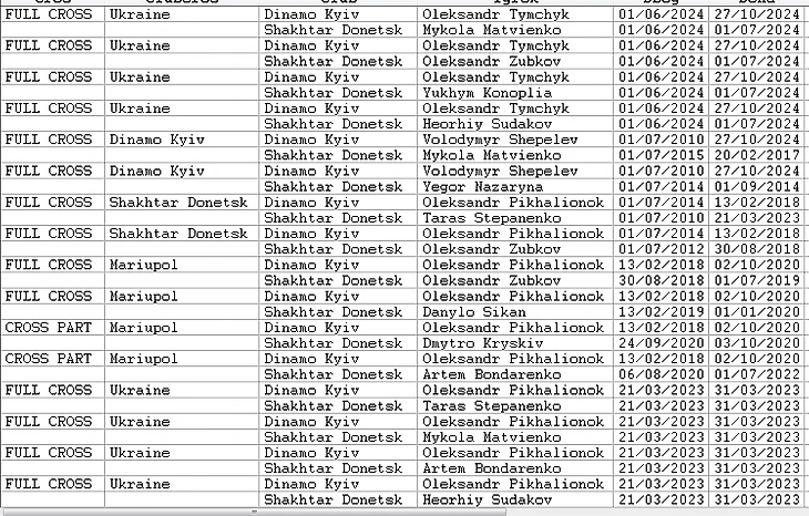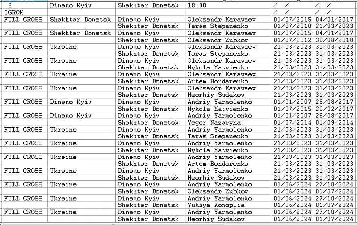 Вашему вниманию предоставляется информация 1.игроки выступали в прошлом за клуб-соперник. 2.Соперники играли за один и тот же клуб (возможно в разное время- NO CROSS)