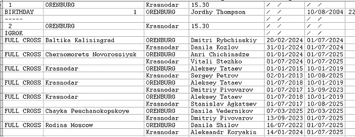1. Об именинниках в текущих матчах(+\- 3 дня к дате матча)