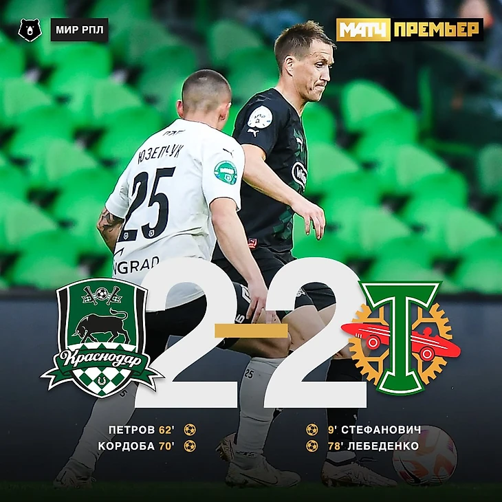 «Торпедо» дало бой «Краснодару» на их поле. У автозаводчан забил дебютант Илья Стефанович (понадобилось всего 9 минут в своем первом матче в РПЛ) и ветеран нашего футбола Лебеденко Игорь Владимирович, побивший рекорд державший 20 лет.