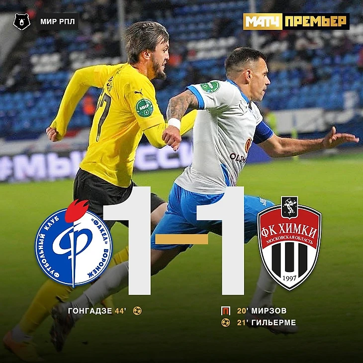РПЛ в 2023 году открыли матчем в Воронеже. Местный «Факел» принимал подмосковные «Химки». В битве аутсайдеров нашего чемпионата победителя не оказалось - мирные 1:1. Зато воронежские фанаты красиво встретили возвращение турнира песней и никакого гимна ЛЧ нам не надо.
