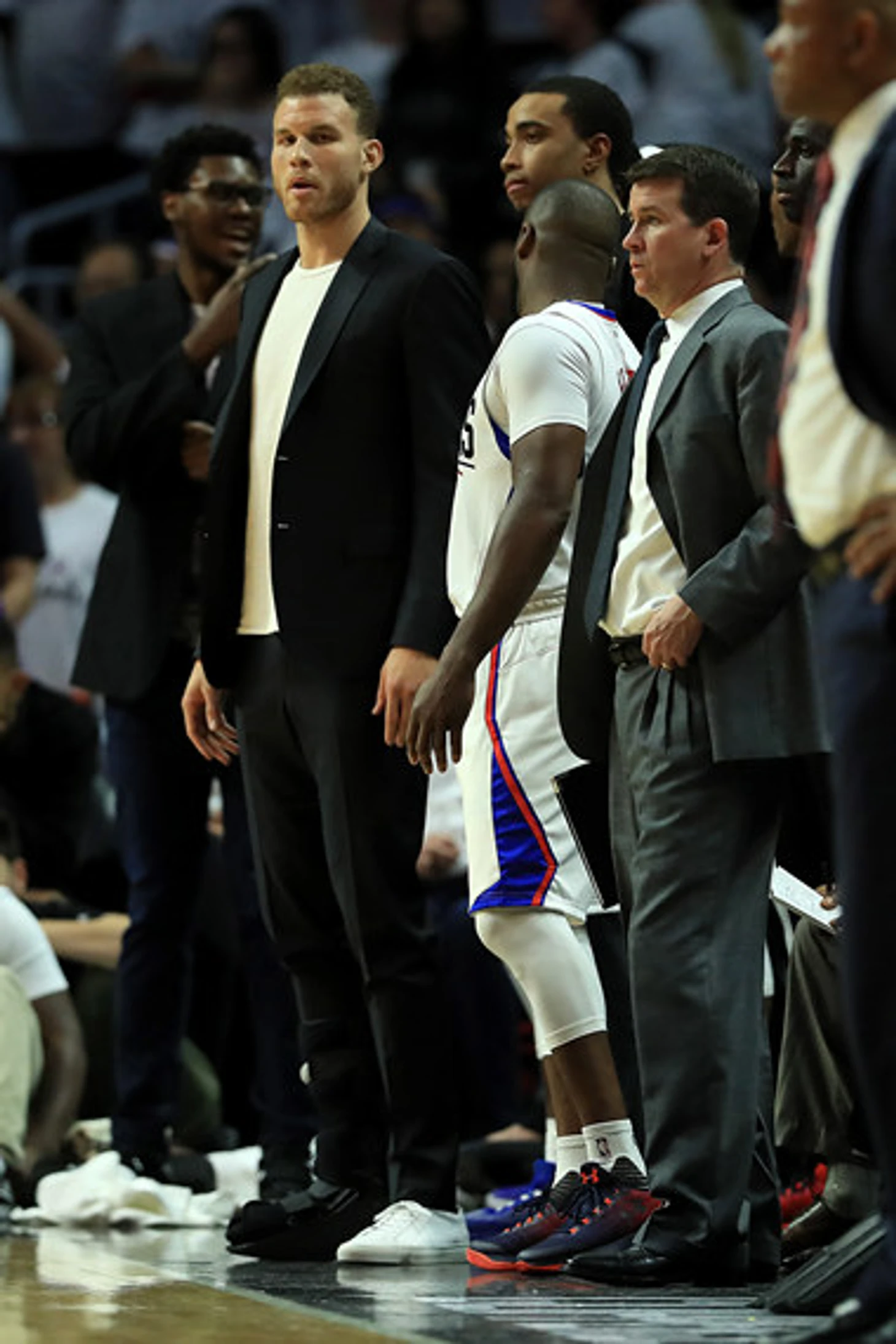(Быстро сменим тему: я чертовски наслаждался игрой Блейка в прайме и считал тогда, во втором раунде плей-офф 2015-го, что он был третьим лучшим игроком лиги. Но его тело не хотело сотрудничать с ним. Он обломало его. Даже до своей последней травмы, 28-летний Гриффин реже стал прыгать через других парней, и его игра на своей половине регрессировала настолько, что на самом деле одним из его любимых приёмов стало «ринусь в атаку сразу за моим защитником, брошусь как рыба, которую только что вытащили из океана». Я любил за ним наблюдать, так что мне не очень весело писать что-то подобное. Ну, если не считать этой взбучки в стиле рыбы. Это мне нравится. Но не всё остальное).