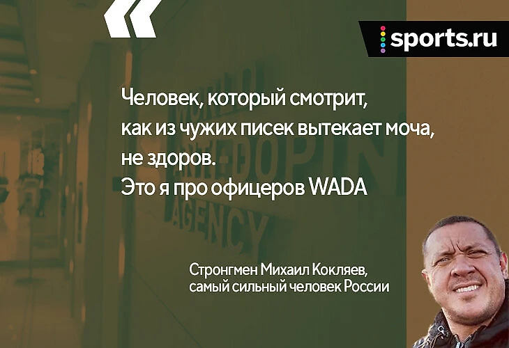 Думаешь, там такие святые сидят? Да человек, который ездит смотреть, как из чужих писек вытекает моча, уже не здоров. Это я про офицеров WADA. Они ковыряются в чужой моче, но не ради чистого спорта, а из-за денег. Туда не от большого ума идут. И когда они приходили ко мне, у меня всегда было сочувствие.