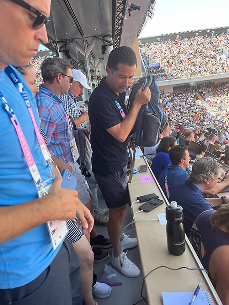 Некоторые из коллег отчаянно ругались с менеджером зоны – тот не пускал на трибуны, потому что там не было мест. Вызвали охрану. Некоторые смирились – и занимали места в коридоре у стеклянных окошек, через которые были видны корты.