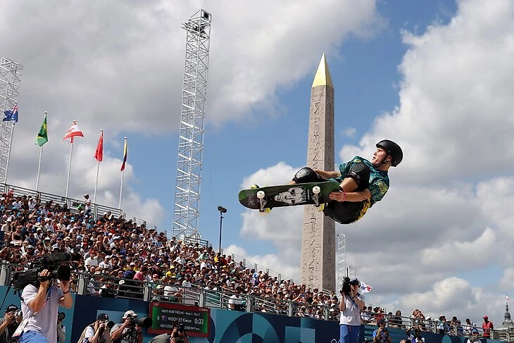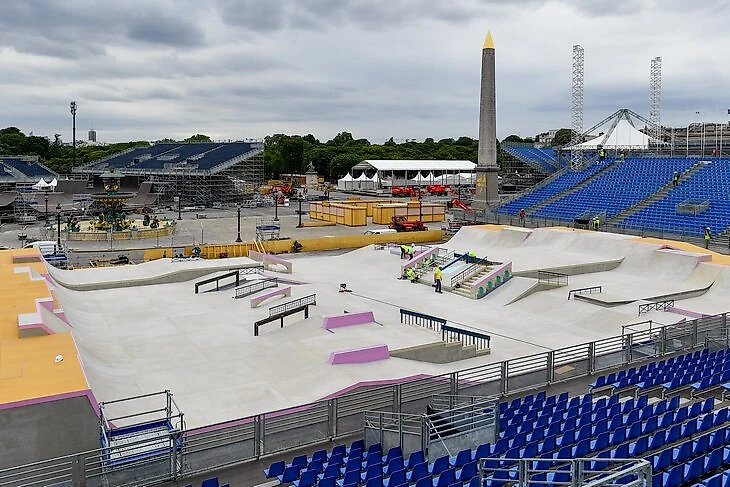 В Париже устроили фестиваль таких дисциплин в одном месте – на площади Согласия. Здесь и баскет 3х3, и BMX-фристайл, и пройдет брейк-данс, а пока – скейтборд.