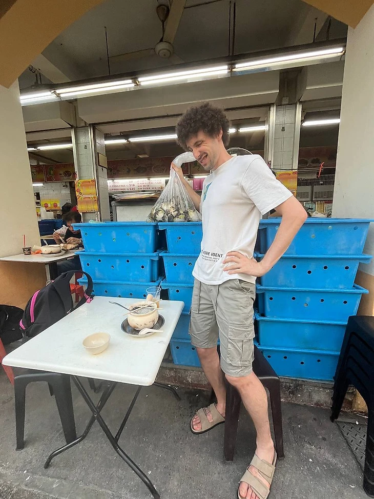 Пока ждал заказ, пошел бродить по заведению. На кухню не пустили. Но от повара узнал, что деликатес завозят из соседней Малайзии.