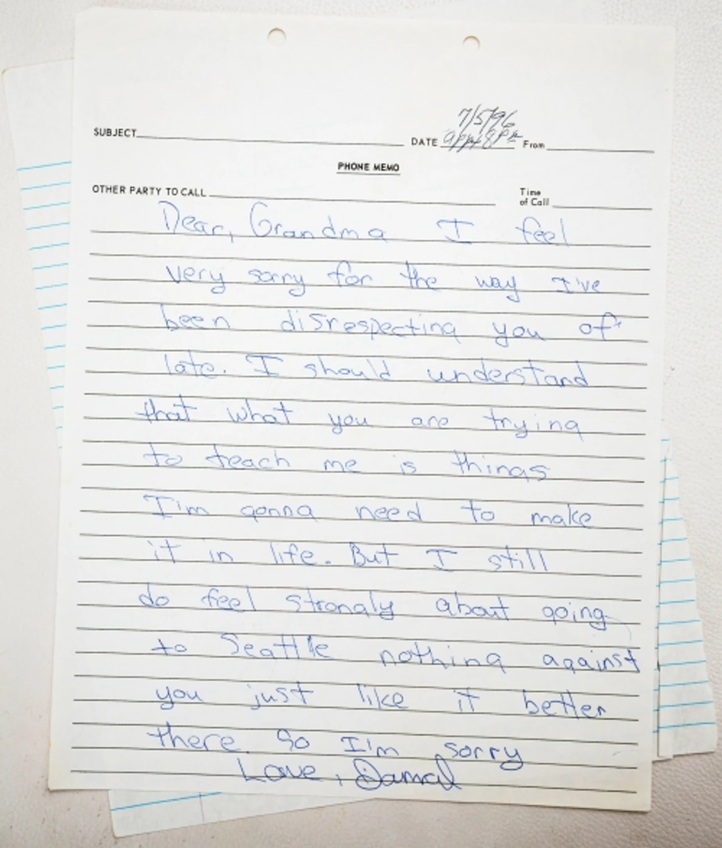 Бабушке Джамал оставил рукописное письмо от 5 июля 1996 года.