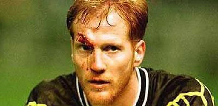 Маттиас Заммер (Германия, защитник и полузащитник). Родился в 1967-м году в Дрездене. 2-кратный чемпион Германии и победитель Лиги чемпионов в составе дортмундской Боруссии. Чемпион и лучший футболист Европы-1996. В 1998-м году, при операции на колени Маттиасу была занесена инфекция. В связи с этим его игровая карьера прервалась. Отличался надежностью в обороне и умением сделать острую передачу. Был техническим директором Немецкого футбольного союза. И спортивным директором мюнхенской Баварии. Из Баварии ушел по состоянию здоровья, в связи с нарушением кровообращения в головном мозге.