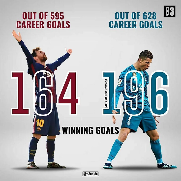 • Из 628 голов Криштиану Роналду, победные - 196 [31,21%]