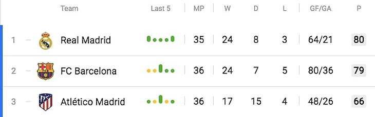 Если «Реал» победит в следующих двух играх, они будут официально объявлены чемпионами.