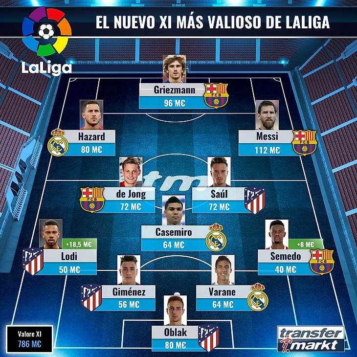 Месси, Азар, Облак, Каземиро и Гризманн в сборной самых дорогих игроков Ла Лиги по версии Transfermarkt