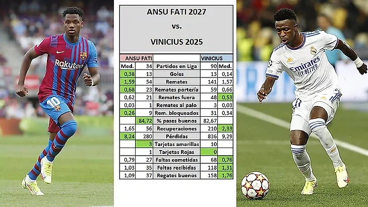Пока соперники больше фолят на Винисиусе, чем на Ансу. Бразилец больше заряжен на работу в обороне, у него больше отборов и обводок, чем у Фати. В плане дисциплины у мадридиста тоже дела обстоят лучше.