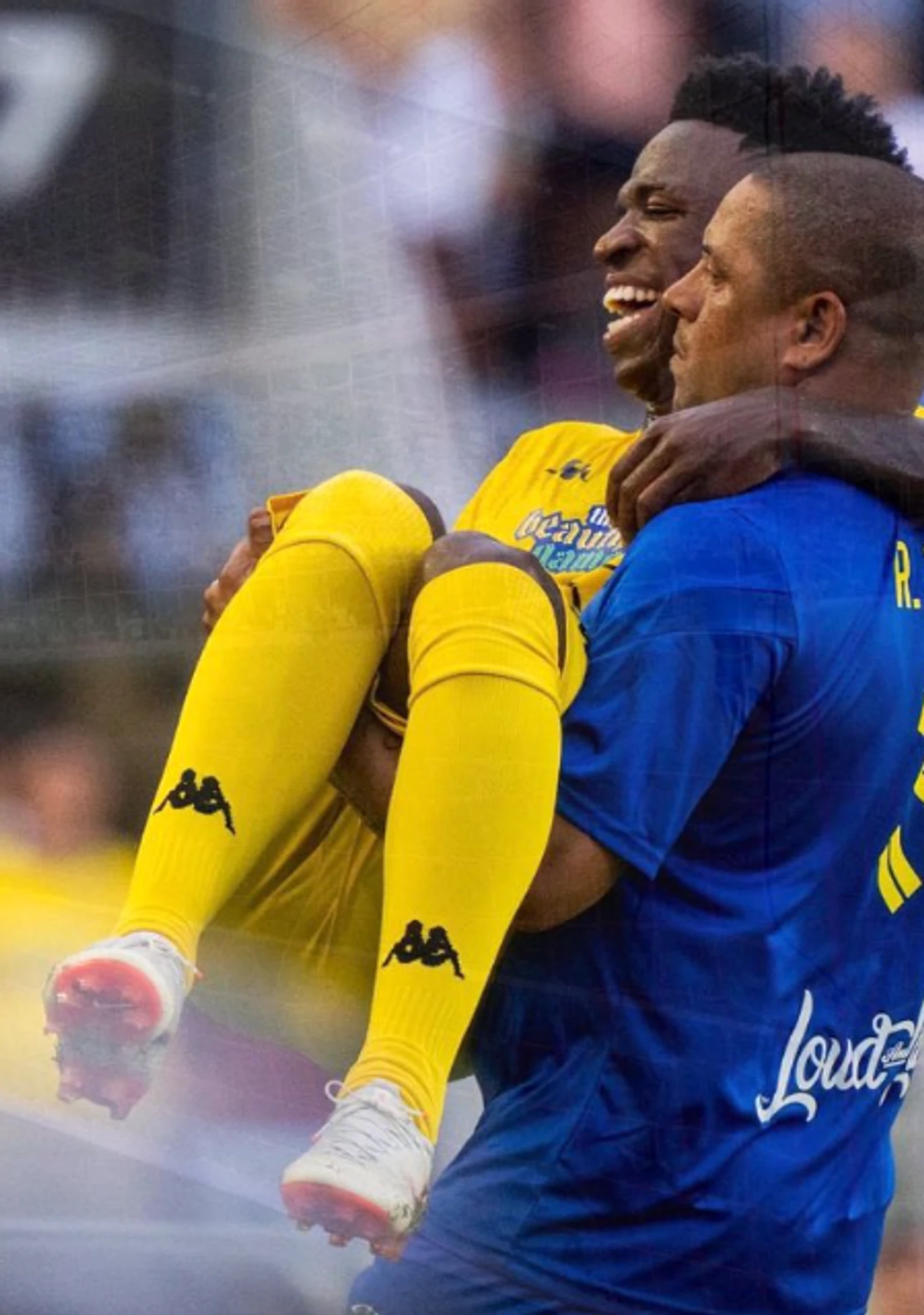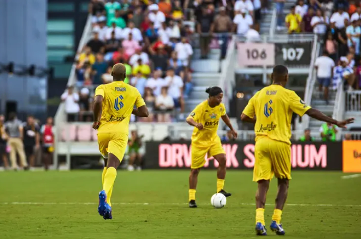 На стадионе DRV PNK, домашнем стадионе клуба MLS Дэвида Бекхэма «Интер Майами», прошел абсолютный праздник с участием великих людей прошлого и настоящего. В команде Роналдиньо были Рене Игита, Рафаэль Маркес и Патрик Клюйверт. Он также смог использовать свои связи и статус, чтобы позвать нынешних игроков - Поля Погба, Пауло Дибалу, Блеза Матюиди и Винисиуса Жуниора. За команду Роберта Карлоса играли Кафу и Ривалдо, а Карлос также выбрал Альфонсо Дэвиса, Эдера Милитао, Радамеля Фалькао, Артуро Видаля и Нани. В матче было забито 22 гола! Роналдиньо открыл счет на седьмой минуте, но команда Карлоса повела 8:5 к перерыву. Пас не глядя от Рона: Звезды прошлого и настоящего великолепно соединились, когда Роналдиньо отдал голевую передачу Винисиусу, который отпраздновал это, исполнив фирменный танец своего кумира. Винисиус руководил игрой и в перерыве перешел на другую сторону, чтобы поиграть и за команду Карлоса, он снова забил. Самым неожиданным бомбардиром стал Стив Нэш, икона НБА и нынешний тренер «Бруклин Нетс». В конце концов, команда Карлоса одержали победу со счетом 12:10.