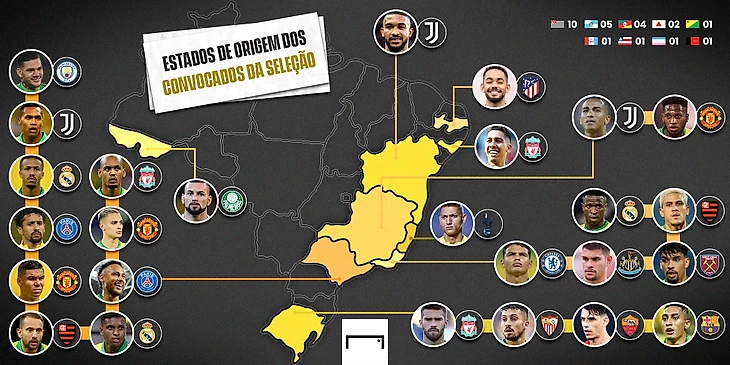 На графике ниже можно узнать, из какого штата каждый из игроков бразильской сборной.