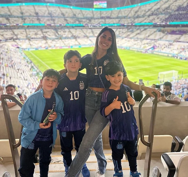 После победы над сборной Мексики жена Лео Месси опубликовала фото с трибун стадиона «Лусаил», где смотрела матч с сыновьями.