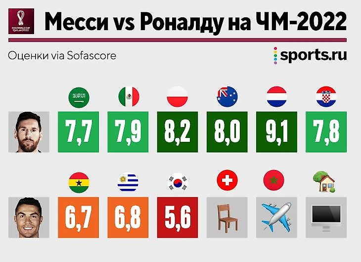 Плюс враньё с оценками. Якобы с sofascore, но я зашёл сам посмотреть и там у Роналду они выше чем тут на картинке. У Месси немного пониже. За уши притягиваете скандал. При чём тут Роналду вообще.