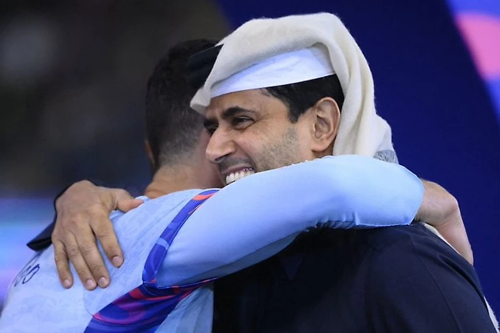 Объятия с президентом «ПСЖ» Насером Аль-Хелайфи.