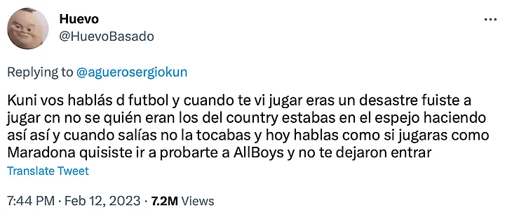 «Куни, ты говоришь о футболе, но когда я увидел, как ты играешь, ты был катастрофой. Когда ты вышел, то даже не трогал мяч, а сегодня говоришь так, будто ты играл, словно Марадона. Ты хотел пойти в «Олл Бойз», но даже они тебя не пустили».