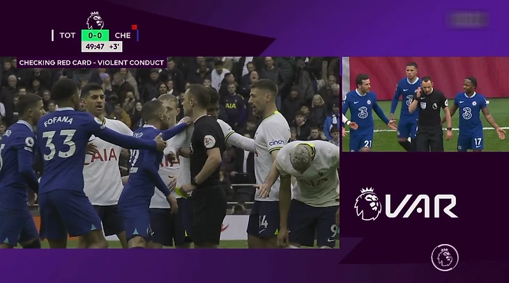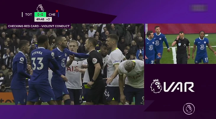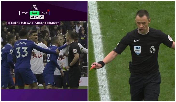 Опытный арбитр АПЛ Стюарт Эттуэлл запомнит матч «Тоттенхэма» и «Челси» надолго. Хаким Зиеш сфолил на Ришарлисоне и между ними возникла стычка. Сперва марокканца по бедру ударил Лангле, а затем сзади подлетел Эмерсон и толкнул его плечом в спину.