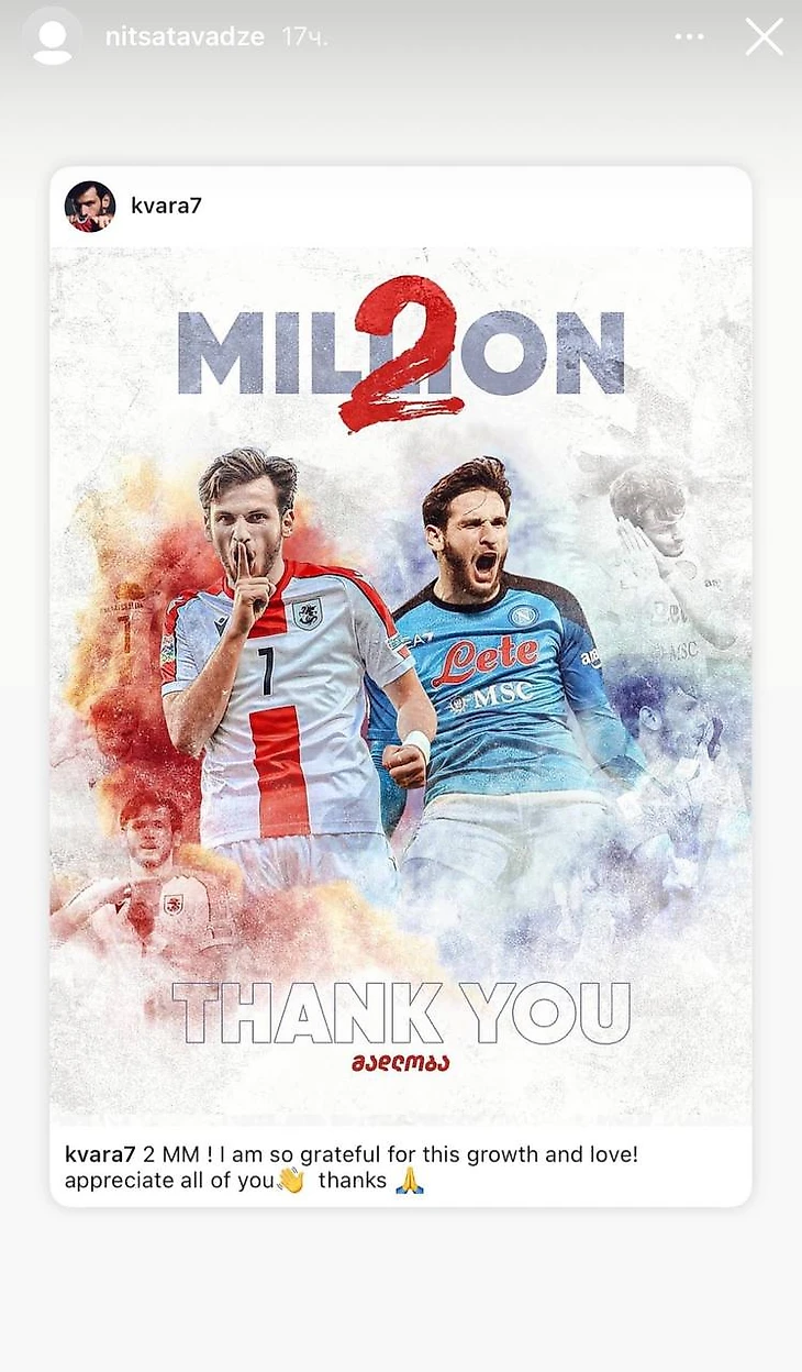 Кроме того, недавно Квара изобразил руками букву Н после гола, который посвятил Тавадзе.