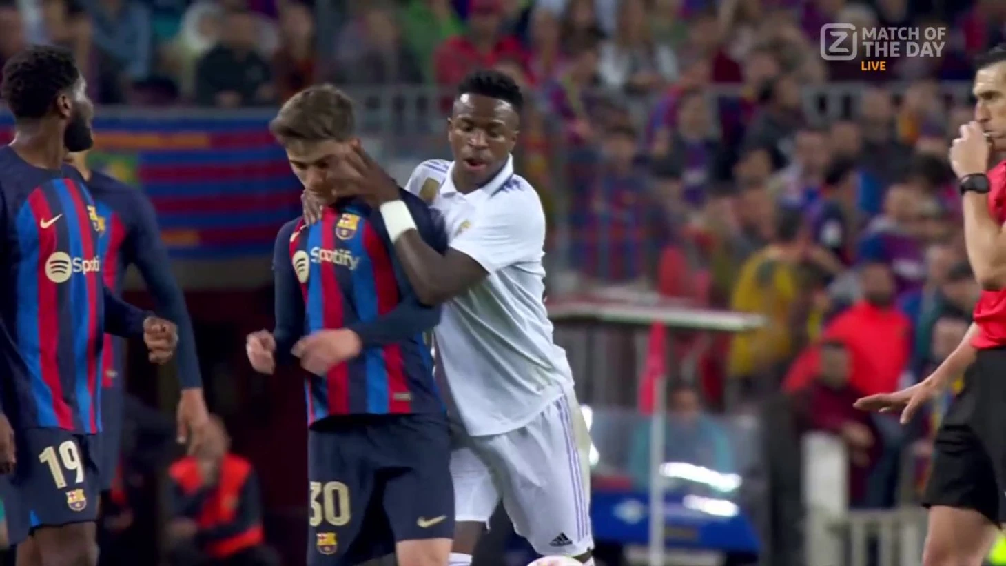 Гави грубо сыграл против Винисиуса, а бразилец попытался отомстить. Судья не оценил