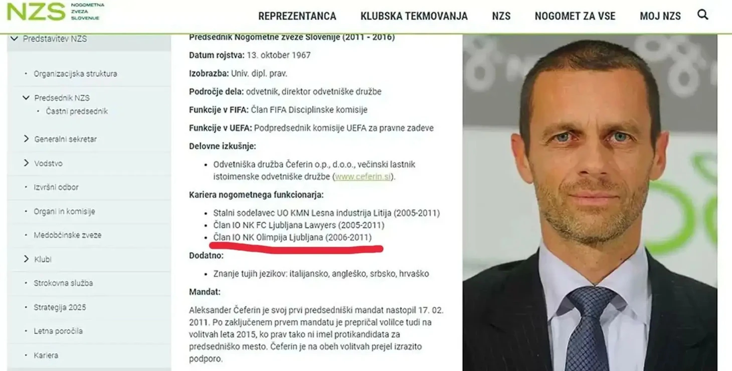 Чеферин утверждал, что был членом совета директоров футбольного клуба «Олимпия» с 2006 по 2011 год, что не соответствует реальности.