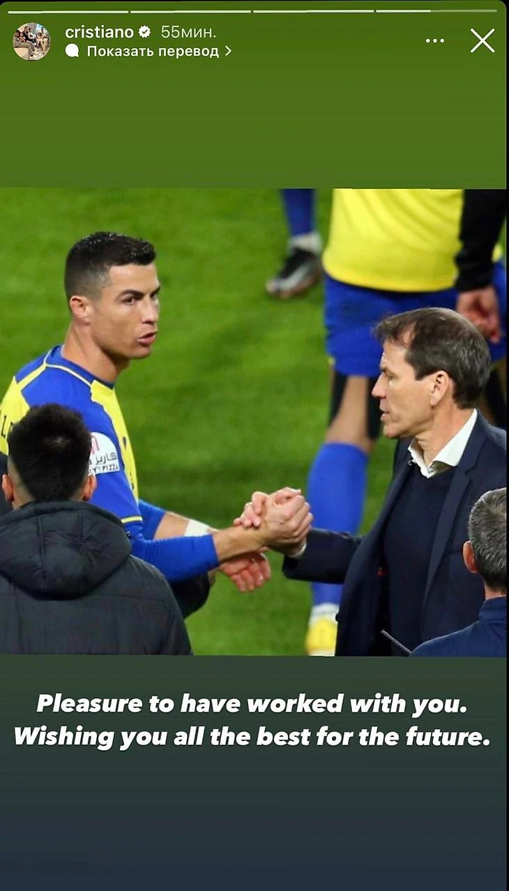 Как только новость об уходе Гарсии стала публичной, Криштиану выложил сторис в своих социальных сетях и поблагодарил тренера за совместную работу:
