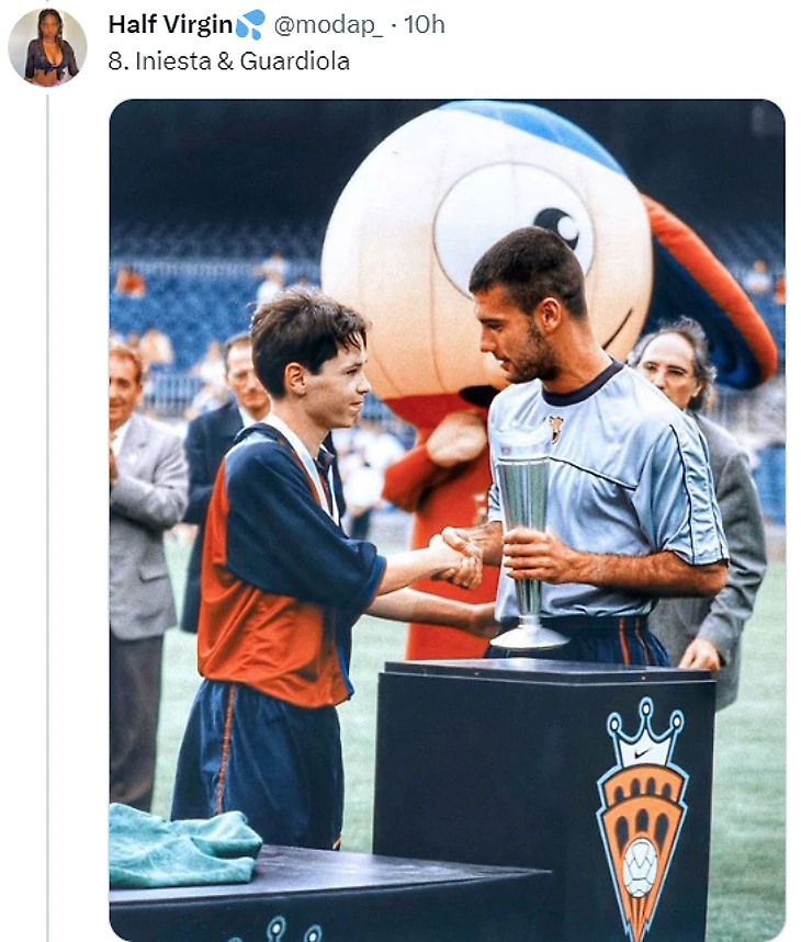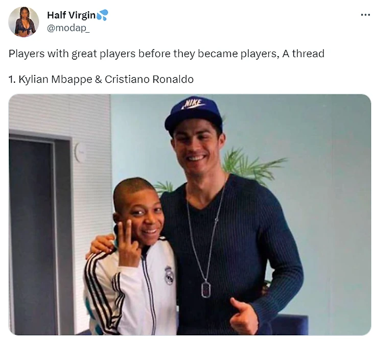Пользователь Твиттера под ником @modap_ поделилась милейшим тредом. В ветке собраны фотографии, на которых нынешние звезды футбола в юном возрасте позируют с легендарными игроками.